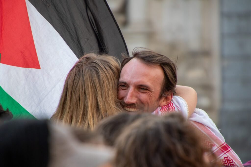 Mais malgré les coups, malgré la peur, malgré l’humiliation, la rue tient bon. Des centaines de personnes, jour après jour, continuent de se rassembler pour défendre les droits humains, pour exiger l’arrêt d’un génocide diffusé en direct, minute par minute.