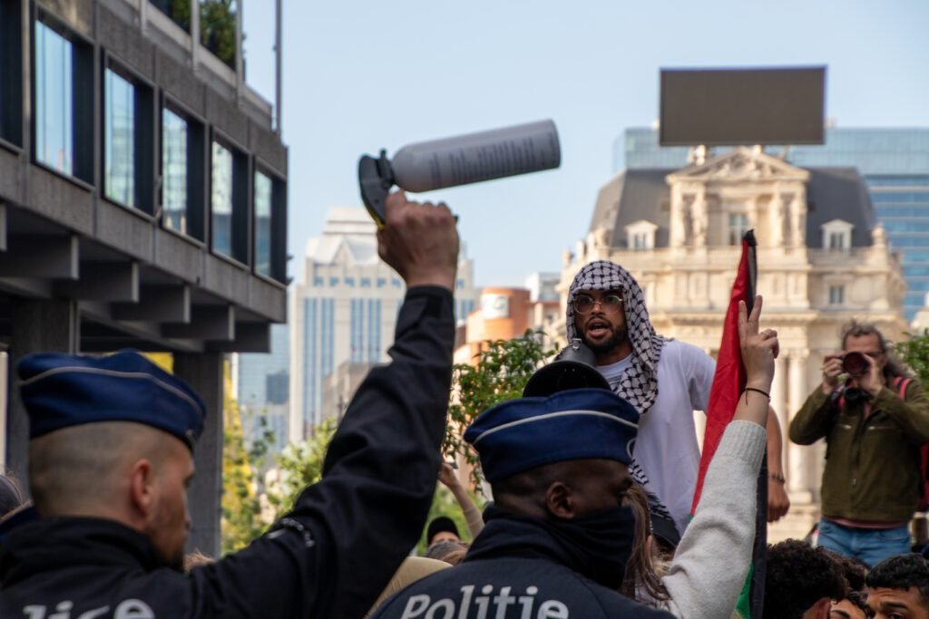 Ce vendredi 16 mai à 19h, place de la Bourse, comme tous les soirs depuis plus d’un mois, des citoyen·nes se sont rassemblé·e·s pour dénoncer le génocide en cours à Gaza. Une manifestation pacifique, habituelle, portée par des slogans et des pancartes. Rien ne laisse présager ce qui va suivre : une opération policière d’une brutalité inquiétante, une nasse rendue invisible par un dispositif policier opaque, des interpellations violentes et des attaques claires contre la liberté de manifester et d’informer. Retour sur une soirée de répression dans la capitale de l’Union Européenne.