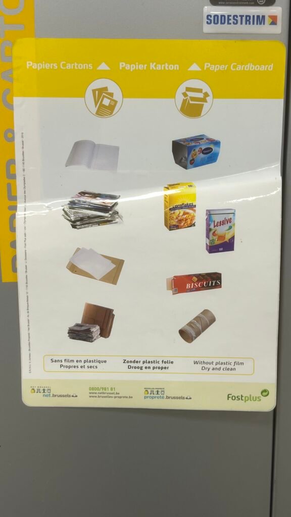 À l’IHECS une sensibilisation est mise en place, mais celle-ci possède quelques défauts. Des affiches sont collées sur des poubelles. Malheureusement celles-ci sont souvent déchirées ou tout simplement absentes. Et dans notre cas, l’indication « carton sans film, propre et sec accepté » n’est pas mise en avant.