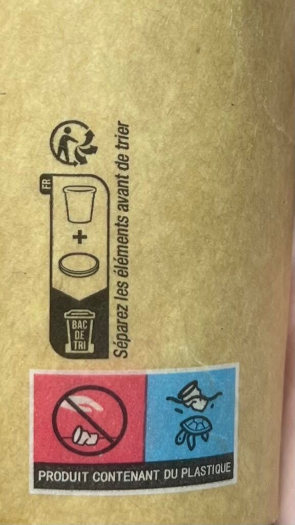 Un signe présent sur le gobelet stipulant que celui-ci doit-être mis dans le bac de tri participe également à cette confusion générale.