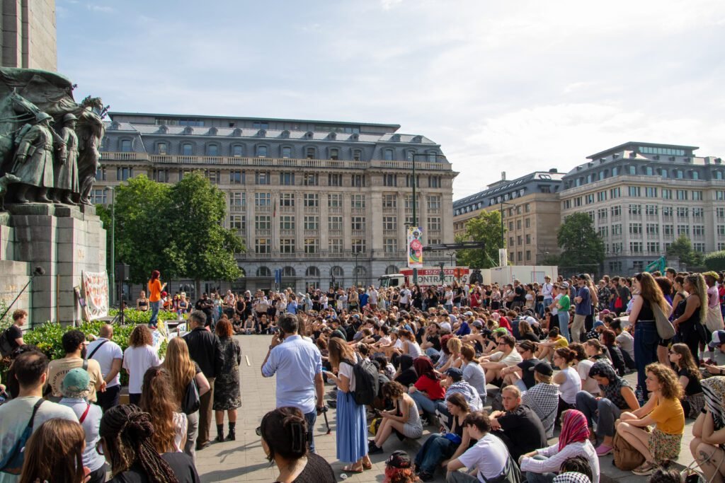 Place Poelaert, plusieurs centaines de personnes ont répondu à l’appel du Comité Justice pour Sourour. Les pancartes dénoncent l’impunité, les violences policières, le racisme systémique.